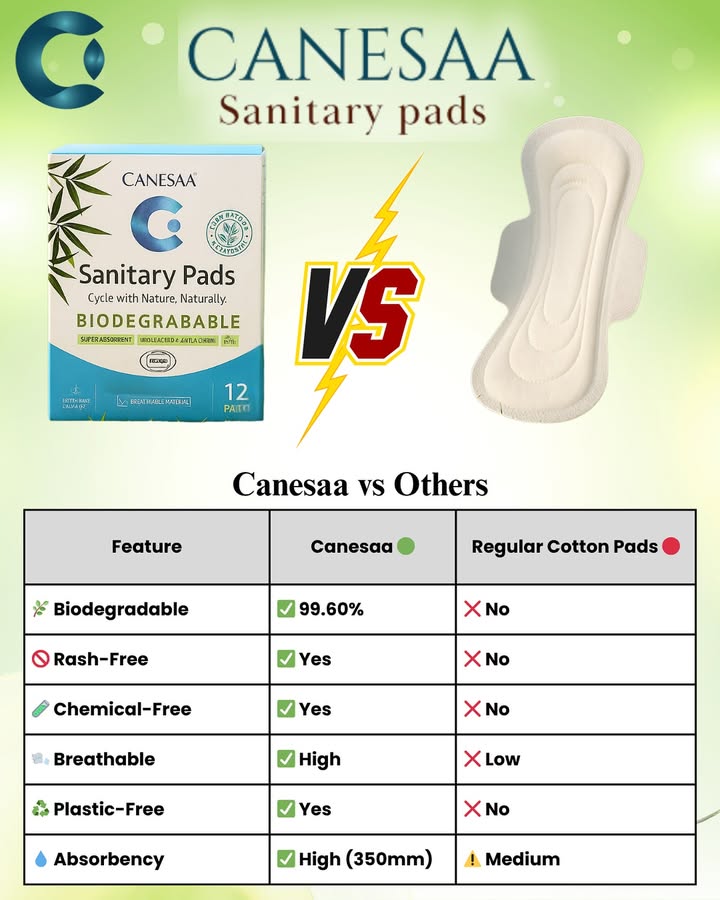 At Canesaa, sustainability is rooted in every fiber of our being. We deeply understand the hazardous environmental implications of traditional sanitary pads that have burdened landfills for centuries. Our solution, Canesaa, is a revolutionary biodegradable sanitary napkin made from bamboo fiber and other plant-based materials, designed to decompose naturally within six months, unlike conventional pads. This ensures it leaves zero toxic residue. From responsibly sourcing renewable bamboo and wood pulp, chosen for their minimal carbon footprint, to our eco-conscious manufacturing, every decision reflects our dedication to a greener future. Choosing Canesaa means actively reducing plastic waste and contributing to a healthier planet.